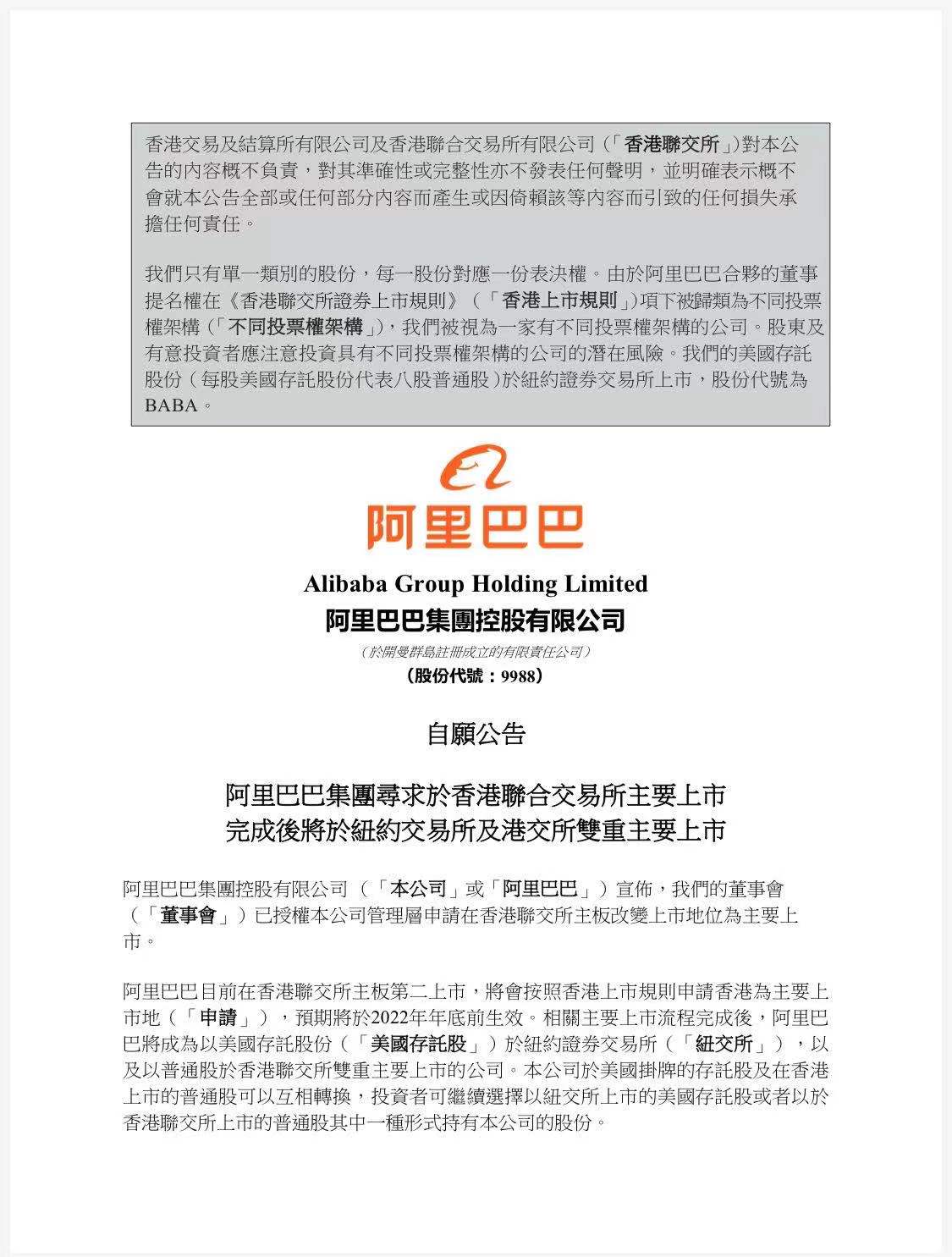 阿里巴巴目前在香港聯交所主板第二上市,將會按照香港上市規(guī)則申請香港為主要上市地,預期將于2022年年底前生效。相關主要上市流程完成后,阿里巴巴將成為以美國存托股份于紐約證券交易所,以及以普通股于香港聯交所雙重主要上市的公司。
