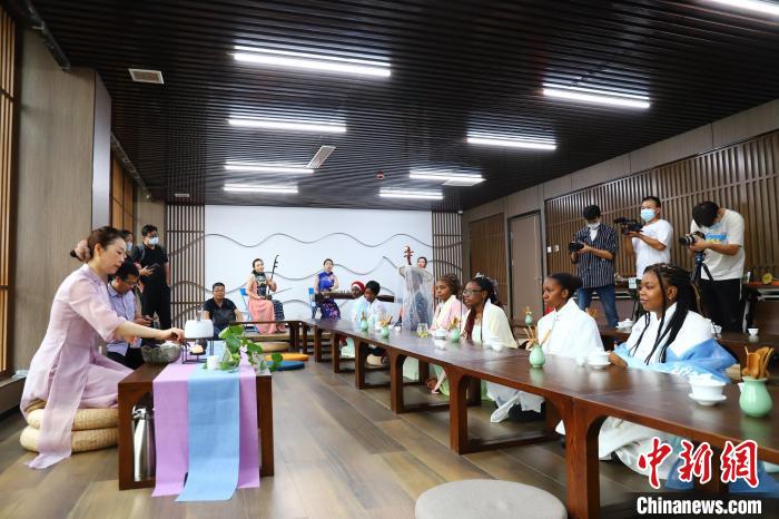 留學(xué)生還更換漢服、唐裝,跟隨老師學(xué)習(xí)茶藝,并品嘗了自己親手泡制的泰山女兒茶。在品茶之余,大家又一起體驗(yàn)了中國(guó)古典樂器之美,一曲享譽(yù)海內(nèi)外的中國(guó)民歌《茉莉花》,讓在場(chǎng)的留學(xué)生一起跟著哼唱,體悟中國(guó)傳統(tǒng)文化的魅力。