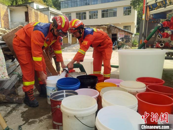 湖北咸寧不少地區(qū)民眾生活用水告急,消防員奔赴鄉(xiāng)村送水(資料圖) 湖北咸寧消防供圖