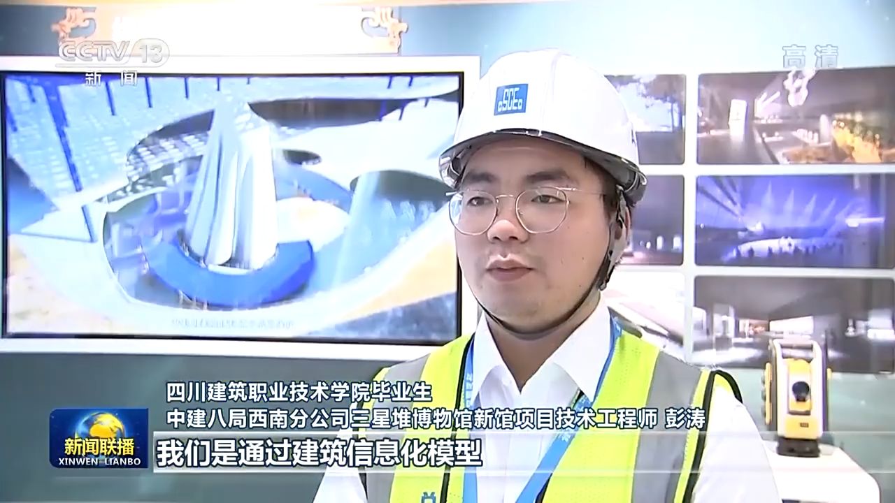四川建筑職業(yè)技術學院畢業(yè)生 中建八局西南分公司三星堆博物館新館項目技術工程師 彭濤:我們是通過建筑信息化模型,提前搭建虛擬博物館,把各種風險提前排除,智能建造讓我們加速奔向未來社會。今天的職業(yè)教育是很有預見性的,讓我提前獲得了建筑信息模型技術及大數(shù)據(jù)等多種本領。