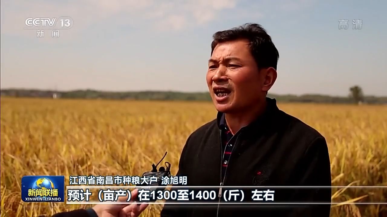 江西省南昌市種糧大戶 涂旭明:中稻長得非常好,預計(畝產(chǎn))在1300至1400(斤)左右,比去年大概增產(chǎn)了100斤以上。