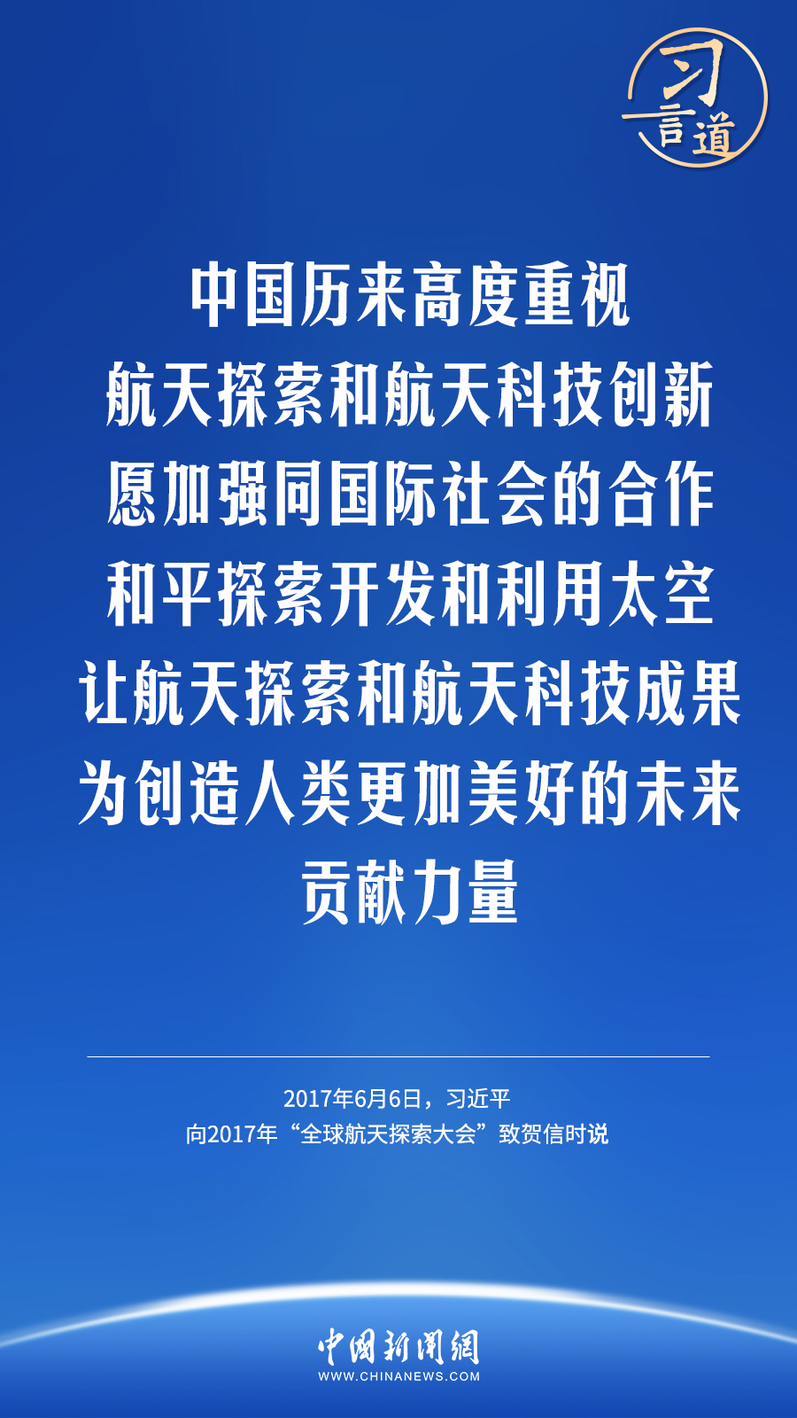 【飛天圓夢(mèng)】習(xí)言道|“推動(dòng)航天事業(yè)造福全人類”