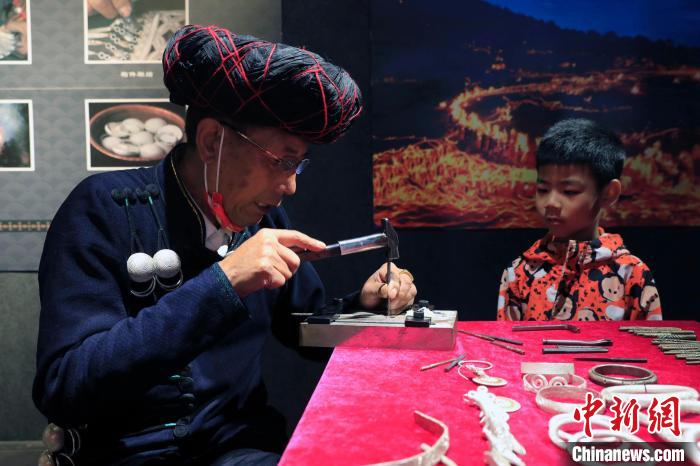 中新網(wǎng)涼山11月7日電 (王利文)“叮咚,叮咚……”6日,清脆的敲打聲從四川涼山民族體育場傳出,在“家園遺珍·時(shí)代新風(fēng)”非遺展演活動中,彝族銀飾制作技藝國家級非遺傳承人勒古沙日正在打制銀器。鷹爪銀杯、鳳冠、胸牌……現(xiàn)場一件件閃亮精致的銀器均出自這位66歲老人之手。