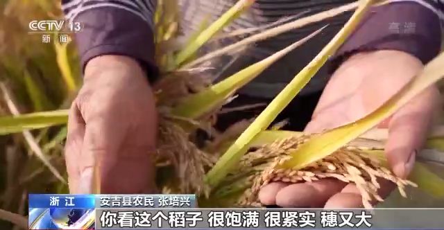 浙江省安吉縣農(nóng)民 張培興:你看這個稻子,很飽滿、緊實(shí),穗又大,稻子千粒重也比往年要重。已經(jīng)到達(dá)我的預(yù)期了,我很開心。