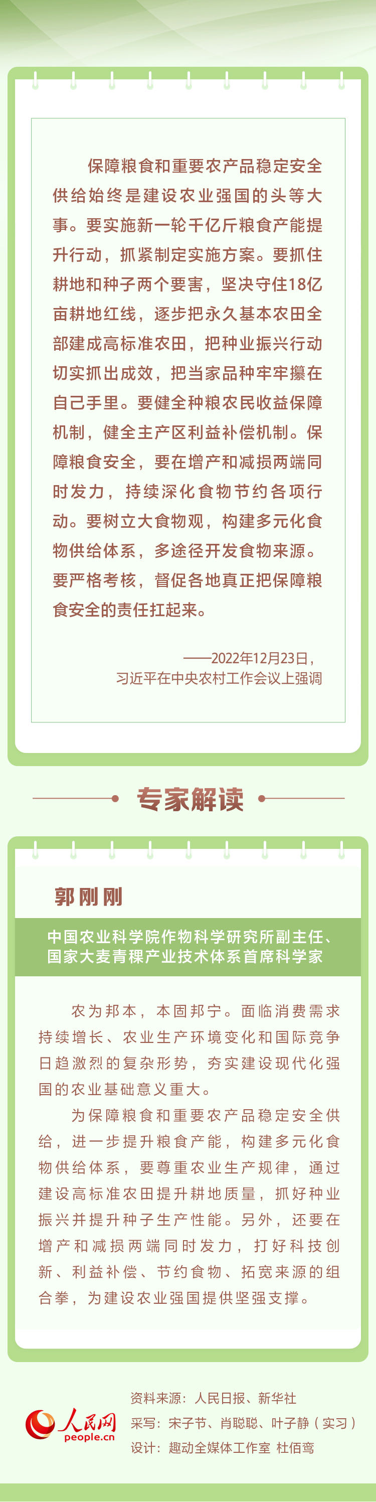 12月23日至24日,中央農(nóng)村工作會(huì)議在北京舉行。中共中央總書(shū)記、國(guó)家主席、中央軍委主席習(xí)近平出席會(huì)議并發(fā)表重要講話。人民網(wǎng)帶您重溫講話要點(diǎn)并邀請(qǐng)專家進(jìn)行解讀。本期聚焦“保障糧食和重要農(nóng)產(chǎn)品穩(wěn)定安全供給始終是建設(shè)農(nóng)業(yè)強(qiáng)國(guó)的頭等大事”。