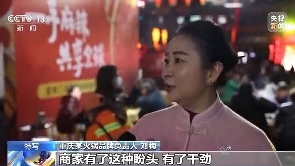 重慶某火鍋品牌負(fù)責(zé)人 劉梅:商家有了這種盼頭,有了干勁,再加上有市民觀望,還來吃。今天都排隊,這種感覺好嘛,我們有一句話叫,賺不賺錢,攤子要扯圓。這種感覺就是一種精氣神的感覺。