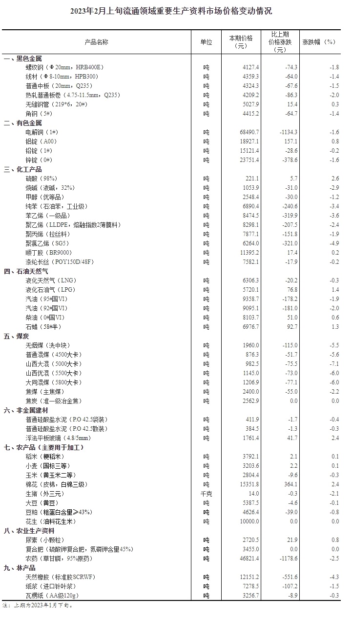中新網2月14日電 據(jù)國家統(tǒng)計局網站14日消息,據(jù)對全國流通領域9大類50種重要生產資料市場價格的監(jiān)測顯示,2023年2月上旬與1月下旬相比,12種產品價格上漲,35種下降,3種持平。其中,生豬(外三元)價格為14元/千克,較1月下旬相比下降2.1%。(中新財經)