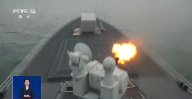 剛剛到達預定海域,無錫艦雷達就發(fā)現海上目標,官兵立即進入戰(zhàn)斗狀態(tài)。鎖定目標后,無錫艦主炮連續(xù)開火成功摧毀海上目標。此時,雷達發(fā)現空中目標來襲。雷達鎖定目標后,副炮迅速對空中目標進行打擊。同時,無錫艦連續(xù)發(fā)射多枚干擾彈,并快速機動規(guī)避。