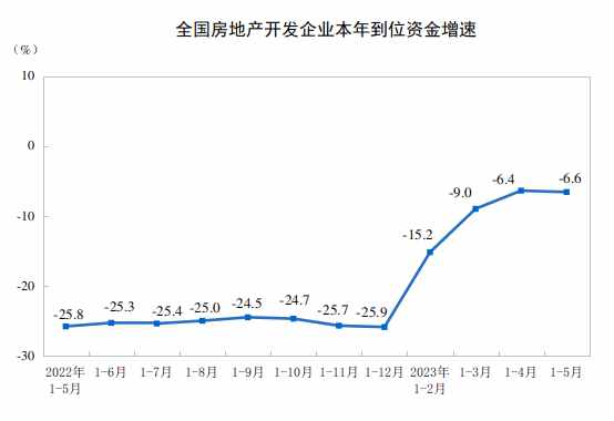 1—5月份,房地產(chǎn)開發(fā)企業(yè)到位資金55958億元,同比下降6.6%。其中,國內(nèi)貸款7175億元,下降10.5%;利用外資13億元,下降73.5%;自籌資金16267億元,下降21.6%;定金及預收款19878億元,增長4.4%;個人按揭貸款10354億元,增長6.5%。