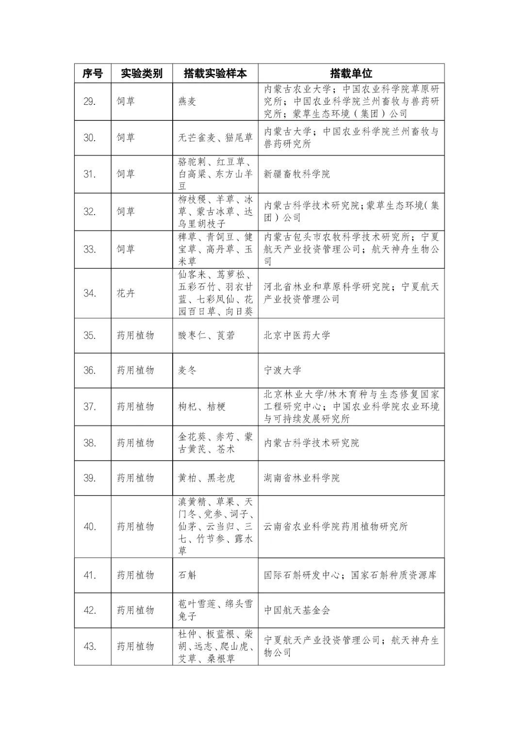 今日,中國載人航天工程辦公室公布神舟十六號載人飛船航天育種實驗項目清單,詳情如下:
