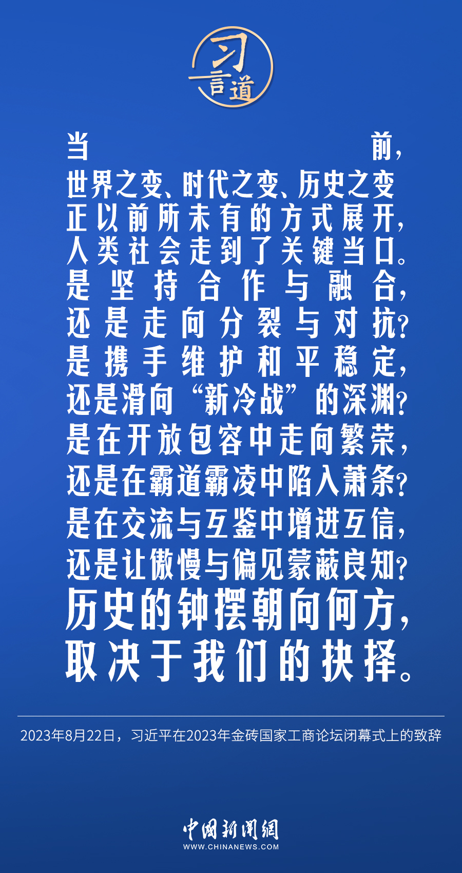 當(dāng)?shù)貢r間8月22日下午,中國國家主席習(xí)近平向約翰內(nèi)斯堡金磚國家工商論壇閉幕式發(fā)表題為《深化團結(jié)合作 應(yīng)對風(fēng)險挑戰(zhàn) 共建更加美好的世界》的致辭。習(xí)近平指出——