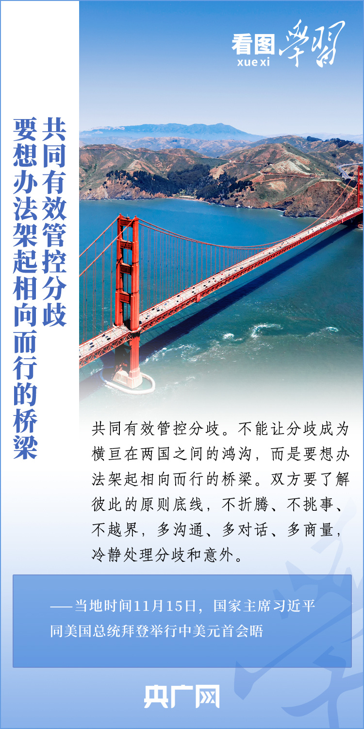 當(dāng)?shù)貢r(shí)間11月15日,國(guó)家主席習(xí)近平在美國(guó)舊金山斐洛里莊園同美國(guó)總統(tǒng)拜登舉行中美元首會(huì)晤。兩國(guó)元首就事關(guān)中美關(guān)系的戰(zhàn)略性、全局性、方向性問(wèn)題以及事關(guān)世界和平和發(fā)展的重大問(wèn)題坦誠(chéng)深入地交換了意見(jiàn)。習(xí)近平主席指出,大國(guó)競(jìng)爭(zhēng)解決不了中美兩國(guó)和世界面臨的問(wèn)題。這個(gè)地球容得下中美兩國(guó)。中美各自的成功是彼此的機(jī)遇。一起來(lái)學(xué)習(xí)!