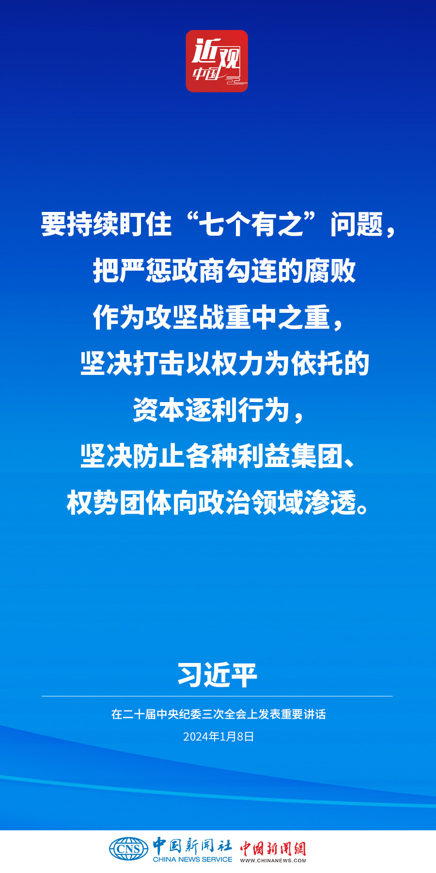 中共中央總書記、國家主席、中央軍委主席習(xí)近平8日上午在中國共產(chǎn)黨第二十屆中央紀律檢查委員會第三次全體會議上發(fā)表重要講話。他強調(diào)——