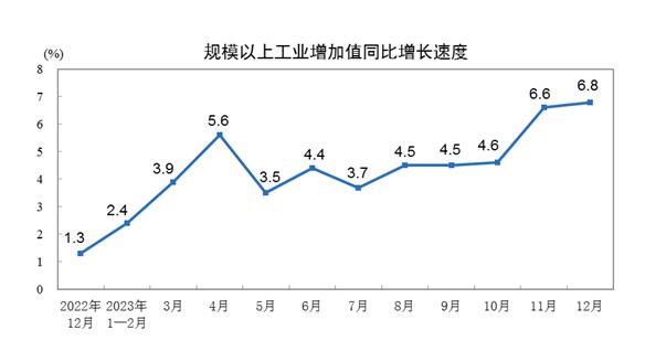 國(guó)家統(tǒng)計(jì)局:2023年12月份規(guī)模以上工業(yè)增加值增長(zhǎng)6.8%