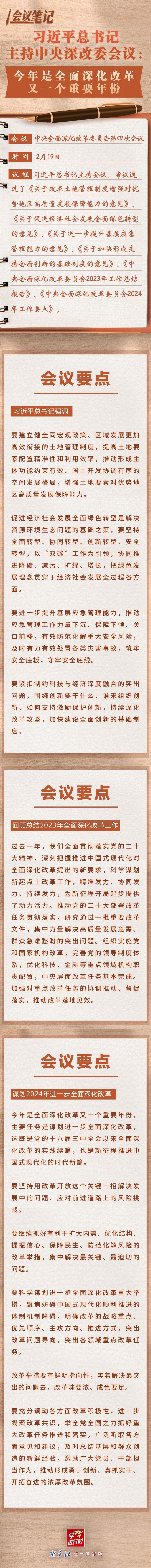 學(xué)習(xí)進行時丨會議筆記:習(xí)近平總書記主持中央深改委會議:今年是全面深化改革又一個重要年份