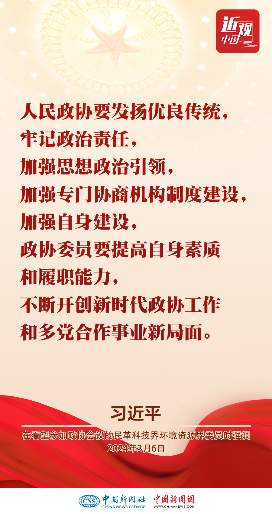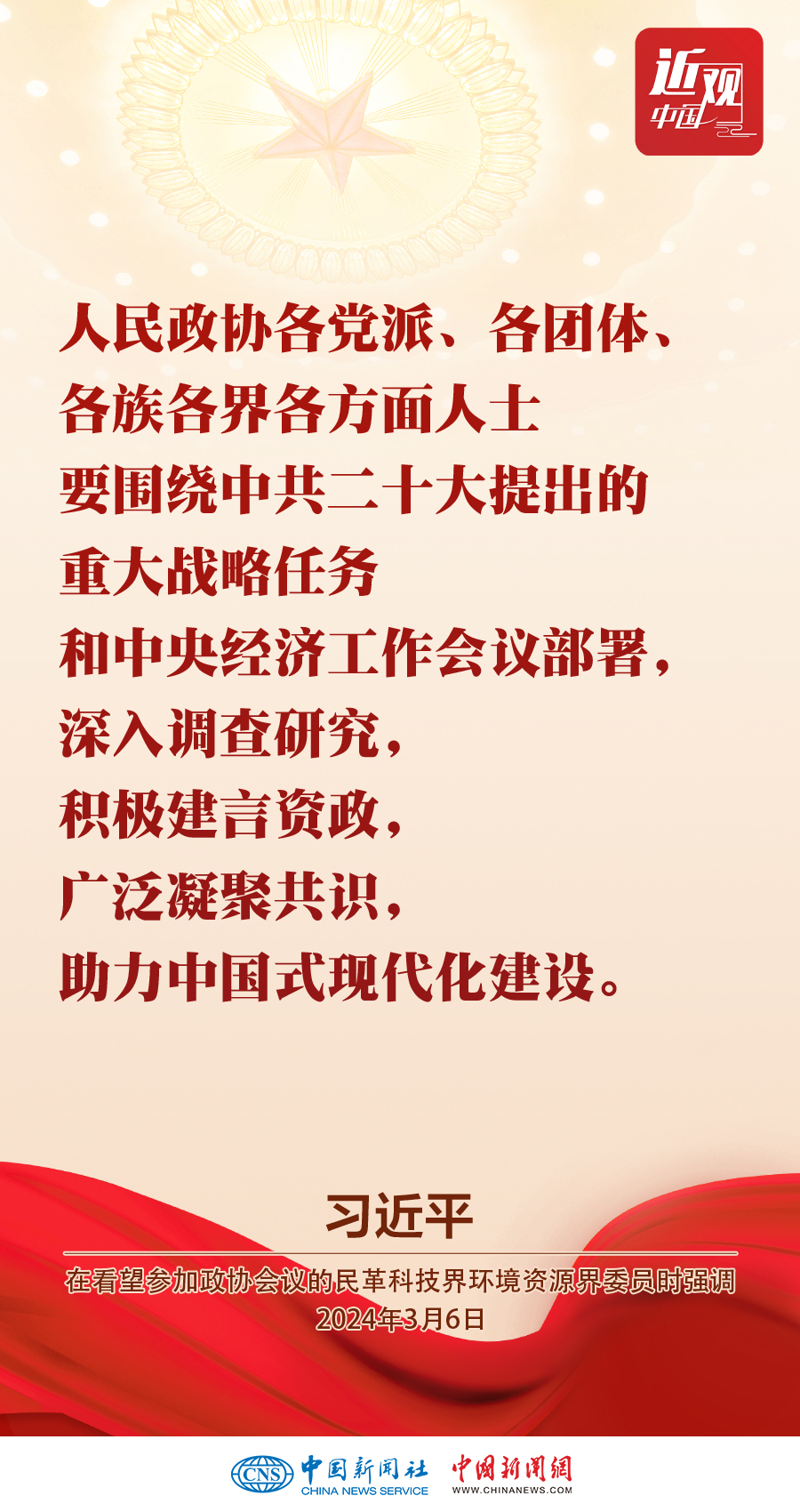 3月6日,中共中央總書記、國家主席、中央軍委主席習近平看望參加全國政協十四屆二次會議的民革、科技界、環(huán)境資源界委員,并參加聯組會,聽取意見和建議。他強調——