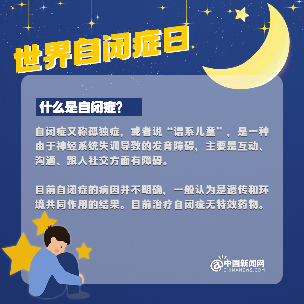 中新網(wǎng)4月2日電 自閉癥兒童,也被稱為“來自星星的孩子”,他們的情緒難以捉摸,他們的思想難以表達(dá),他們像星星一樣孤獨地游離在宇宙中……有數(shù)據(jù)顯示:目前中國自閉癥患者已超1300萬人。自閉癥有哪些認(rèn)知誤區(qū)?該如何早期識別自閉癥?詳情↓關(guān)愛自閉癥患者,讓星星的孩子有愛不孤單!