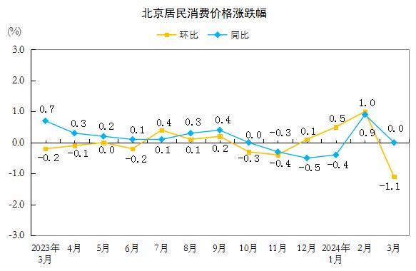 北京3月居民消費(fèi)價(jià)格環(huán)比下降1.1% 同比持平