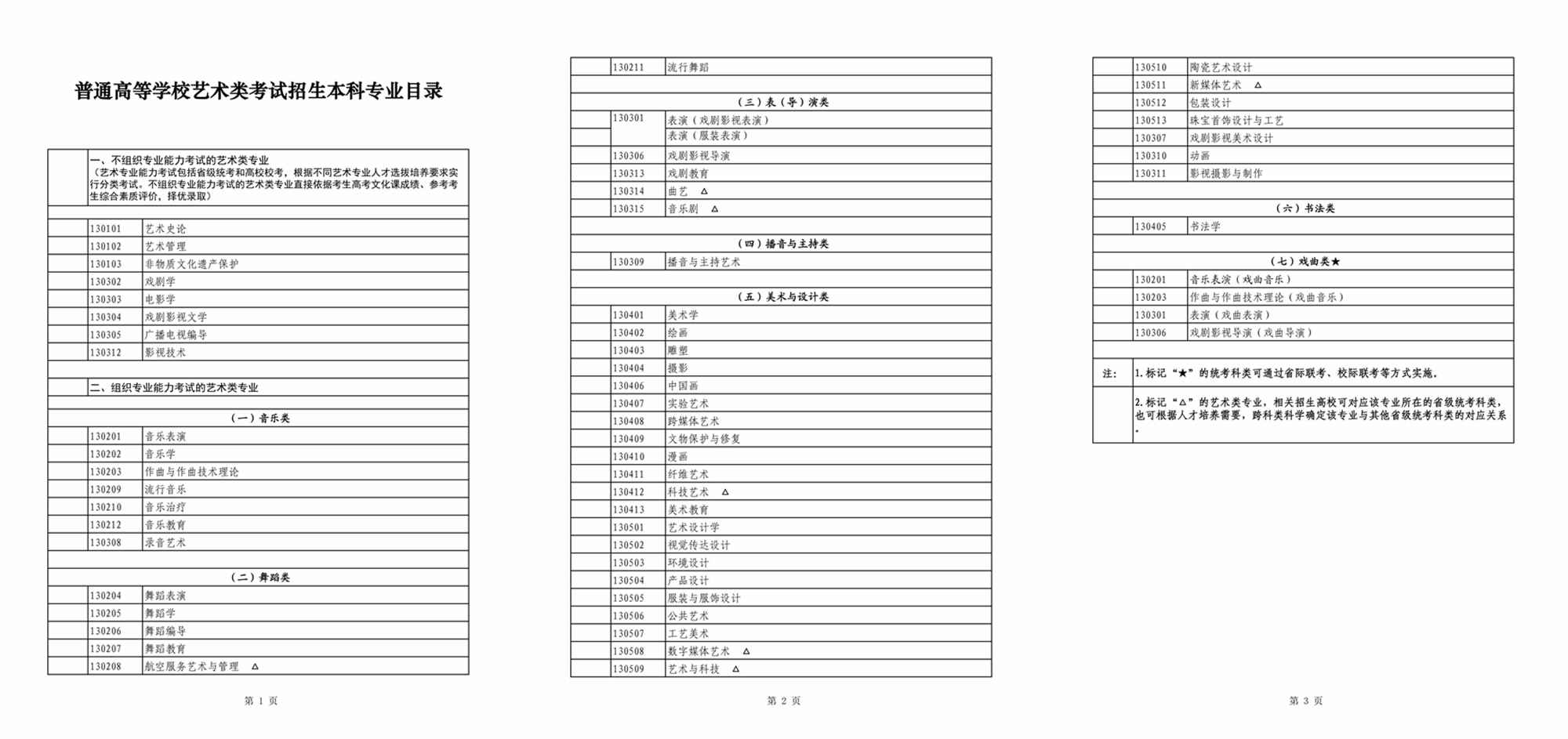 音樂類包括音樂表演、音樂學(xué)、作曲與作曲技術(shù)理論等7個專業(yè),舞蹈類包括舞蹈表演、舞蹈學(xué)、舞蹈編導(dǎo)等6個專業(yè),表(導(dǎo))演包括表演(戲劇影視表演)、戲劇影視導(dǎo)演、音樂劇等5個專業(yè),美術(shù)與設(shè)計(jì)類包括美術(shù)學(xué)、繪畫、雕塑、攝影等28個專業(yè),此外還有播音與主持藝術(shù)、書法學(xué)專業(yè)。