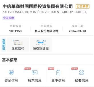 中新財經還以“華商財團”為關鍵詞通過企查查APP進行搜索,出現“中匯華商財團投資管理(北京)有限公司”、“中信華商財團國際投資集團有限公司”兩項最為相關的結果。前者為注冊資本1000萬元人民幣的小微企業(yè),后者則被標注“已告解散”。