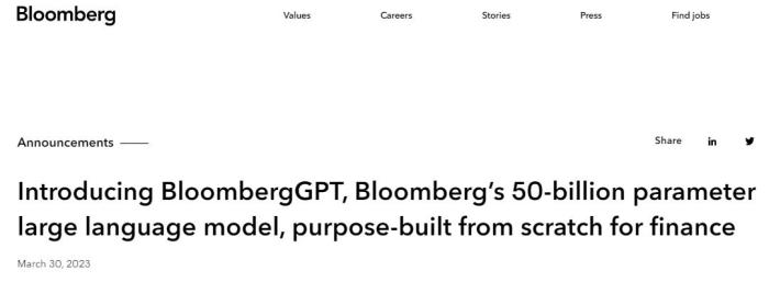 中新網(wǎng)3月31日電 3月30日,彭博發(fā)布公告稱,推出為金融界打造的大型語言模型(LLM)——BloombergGPT。