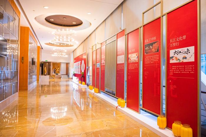 在賡續(xù)傳承板塊,五糧液借酒店中式大堂營造千年酒文化沉浸式氛圍感,以川西古建筑風(fēng)格打造嘉賓簽到處,風(fēng)格鮮明,不拘一格,墻上循環(huán)播放的五糧液品牌宣傳片,深入人心;由九龍壇、501五糧液、經(jīng)典五糧液、第八代五糧液以及和美中國、五福熊貓等重磅產(chǎn)品合力打造的產(chǎn)品展臺位于酒店大堂C位中央,如眾星捧月般奪人眼球;不斷旋轉(zhuǎn)的展臺,確保觀展者可以從不同角度欣賞產(chǎn)品,提升產(chǎn)品觀賞性;四周環(huán)繞的展柜,展示著從第一代到第八代五糧液,不斷賡續(xù)傳承的品牌發(fā)展歷程,娓娓道來每一款時(shí)代經(jīng)典背后濃墨重彩的五糧液發(fā)展篇章。