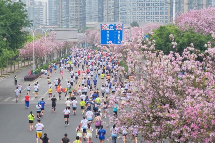 趁著柳州最美時節(jié),2023柳州馬拉松暨警察馬拉松4月9日開跑。該市獨特的洋紫荊盛開路段串聯成馬拉松賽道,參賽選手們一邊盡情奔跑,一邊領略城市獨特風景。該次比賽吸引中國各地2萬人匯聚柳州,亦促進當地經濟發(fā)展。