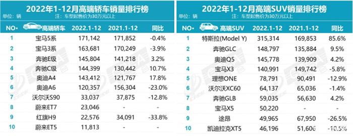 乘聯(lián)會數(shù)據(jù)顯示,2022年,已經(jīng)有三款“造車新勢力”的新能源車型,出現(xiàn)在30萬以上車型的銷量排行榜單中。