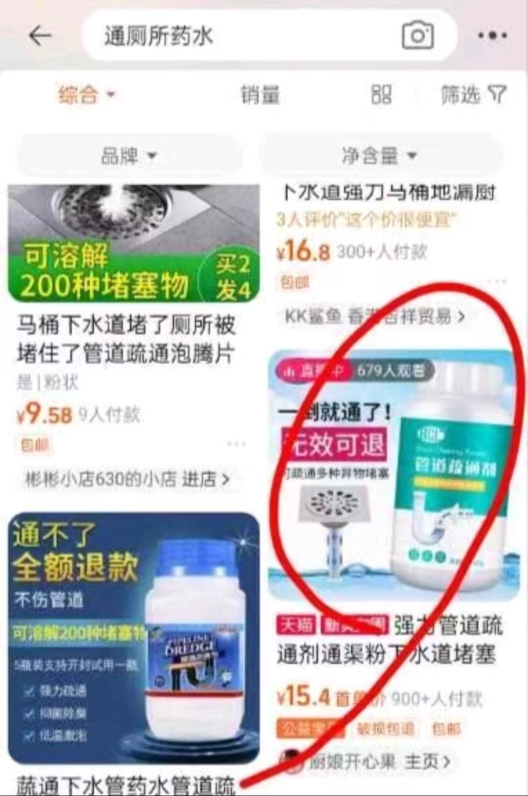 該負責人還提到,自己公司里疏通劑分為185元/斤和285/斤兩種,都是廠家配貨,和網(wǎng)上售賣的那些疏通劑,產(chǎn)品效果不一樣。