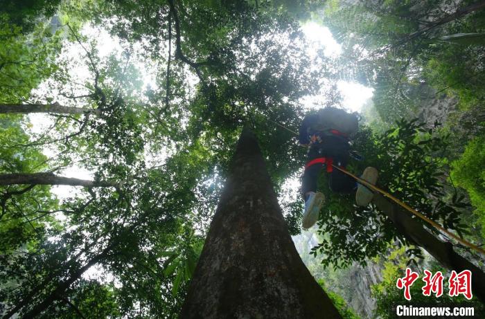 科考人員攀樹測量?!V西林業(yè)局供圖