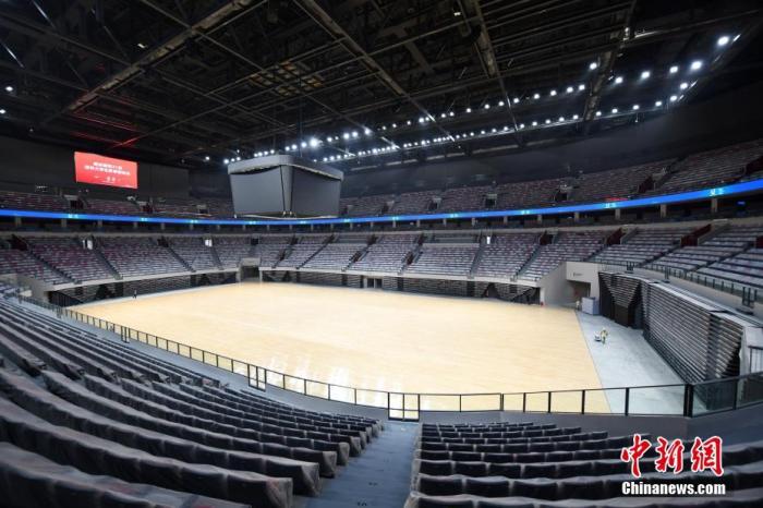 資料圖:圖為工作人員在東安湖體育公園的多功能體育館內(nèi)忙碌。 中新社記者 張浪 攝