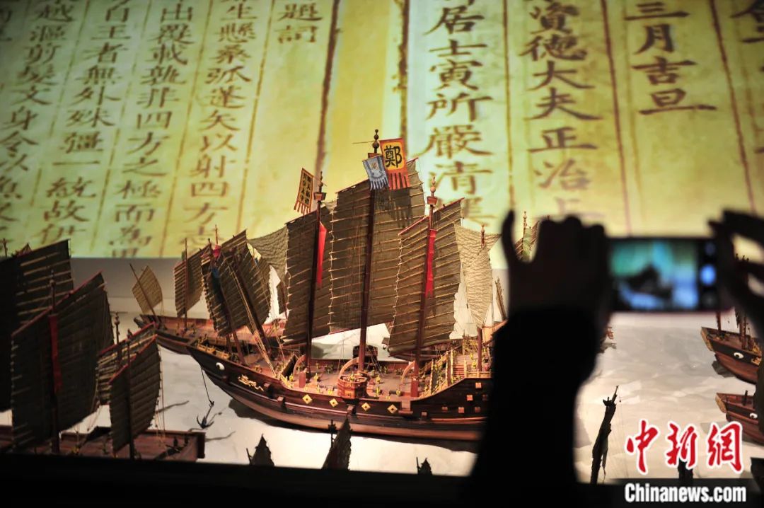 云南昆明鄭和紀(jì)念館,鄭和船隊(duì)模型吸引觀眾。劉冉陽 攝