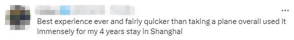有網(wǎng)友介紹說,“最好的體驗,比坐飛機要快得多,我在上海呆了4年,坐過很多次。”