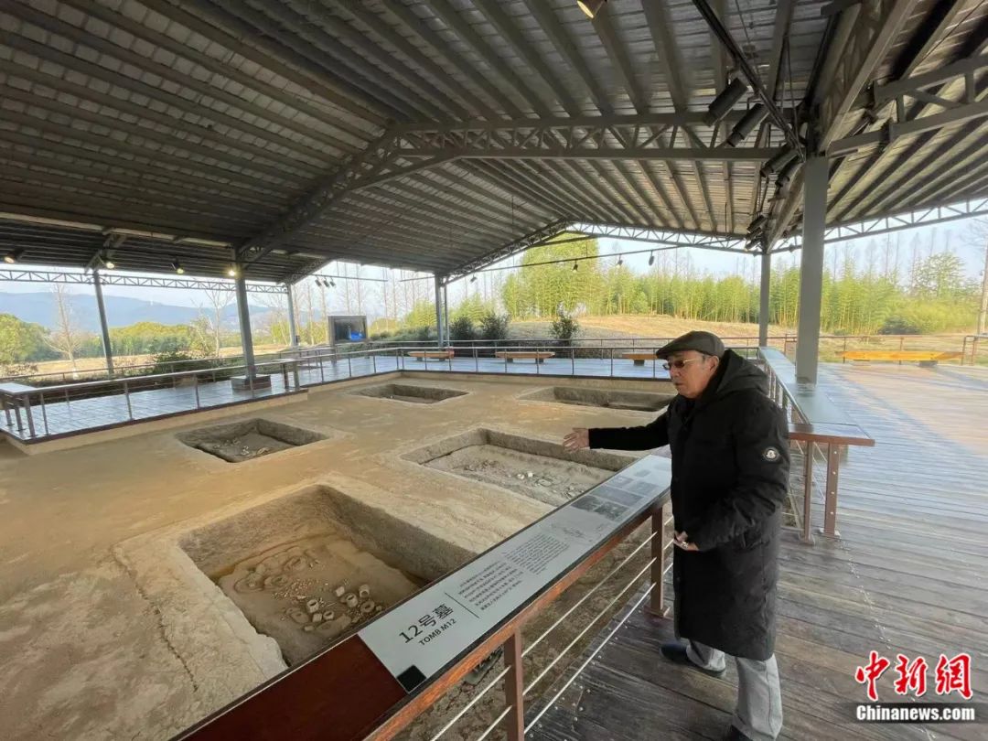 王明達(dá)在良渚遺址公園內(nèi)講述當(dāng)年考古工作的場景。張煜歡攝