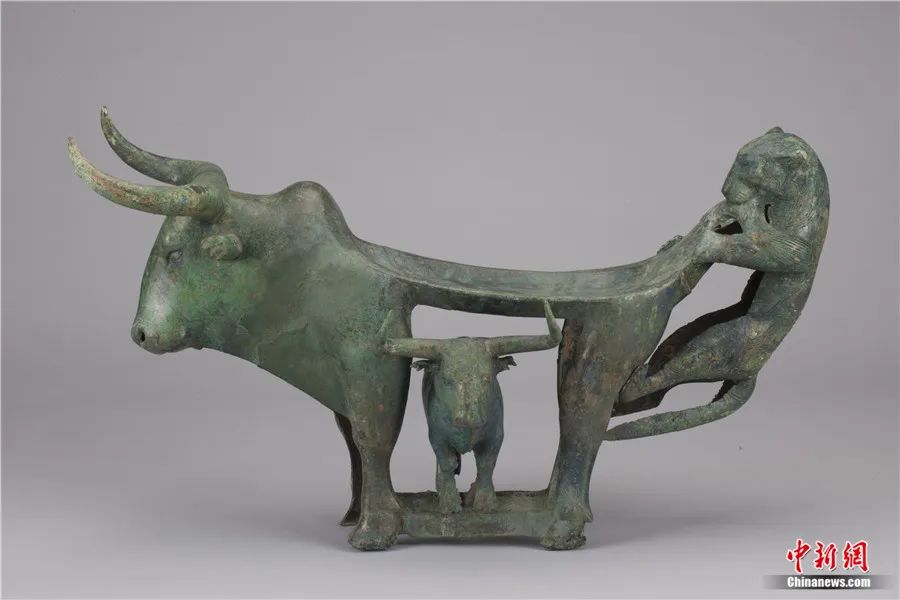 此外,還有專家延伸解讀:在古滇國,虎為百獸之王,象征權(quán)威,牛則是財富和生命的標(biāo)志。?;~案中的虎、牛形象成為滇人重點表達(dá)的主題,顯示了滇人崇虎、崇牛之情,表達(dá)了對權(quán)力、財富和生命的向往。