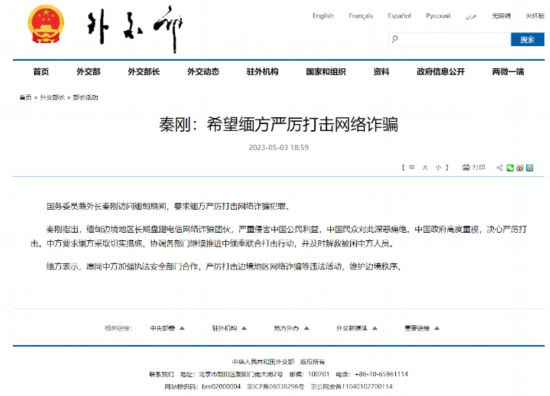 此前,國務委員兼外交部長秦剛訪問緬甸期間,就鄭重地向緬方提到了網(wǎng)絡詐騙:“緬甸邊境地區(qū)長期盤踞電信網(wǎng)絡詐騙團伙,嚴重侵害中國公民利益,中國民眾對此深惡痛絕。中國政府高度重視,決心嚴厲打擊?!?/p>