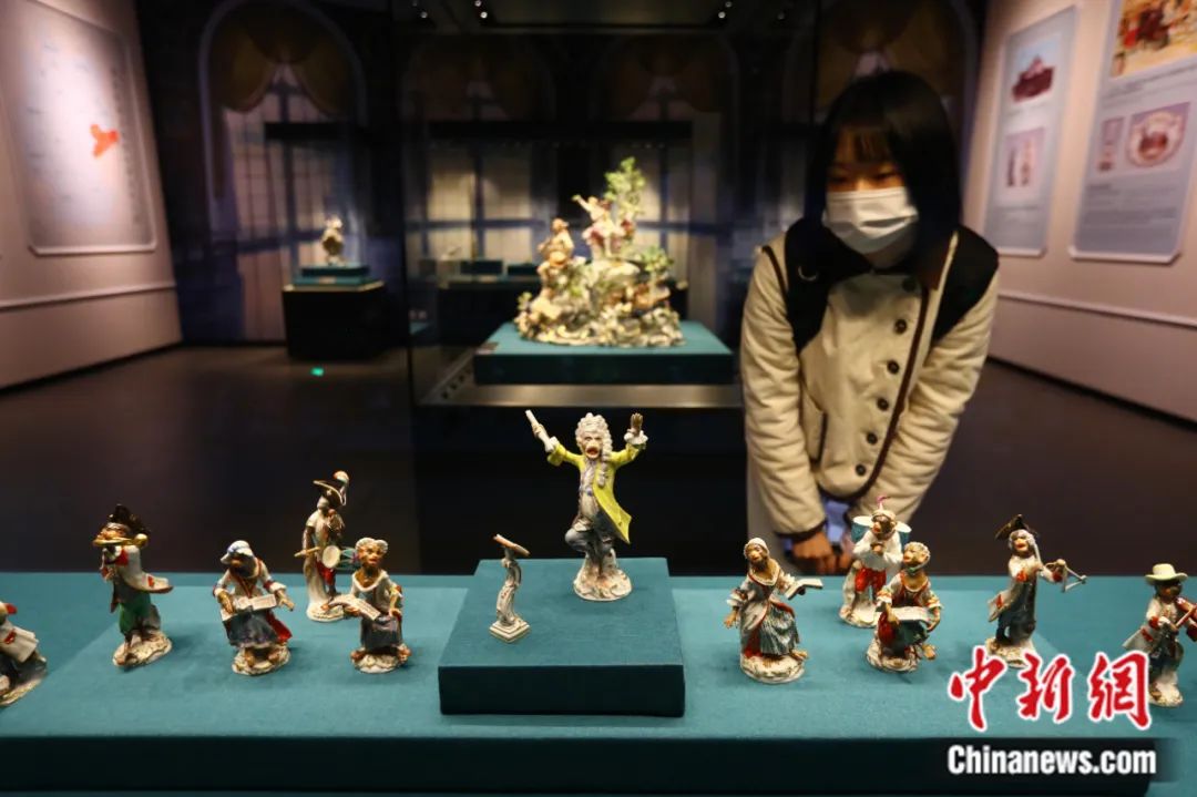 2021年1月15日,在江西省博物館新館展出的“白色金子·東西瓷都——從景德鎮(zhèn)到梅森瓷器大展”吸引參觀者。展覽講述了中國景德鎮(zhèn)、德國梅森兩個瓷器發(fā)源地,再現瓷器發(fā)展歷程和中國瓷器對世界的影響。劉占昆 攝