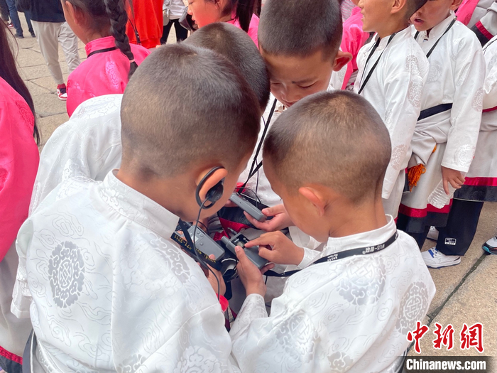 來(lái)自青海玉樹(shù)的俄金仁增,正在和小伙伴們擺弄語(yǔ)音講解器。袁秀月 攝