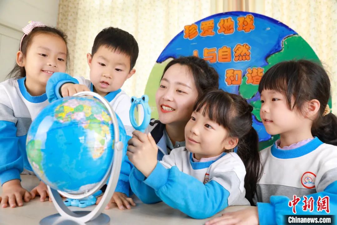 老師為孩子們講解地球結(jié)構(gòu)知識。周洪峰 攝