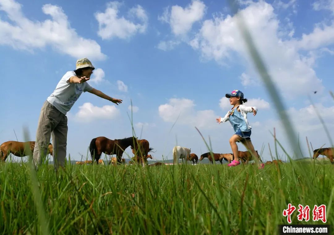 2016年8月,祖孫倆在塞罕壩機械林場內(nèi)玩耍。楊可佳 攝