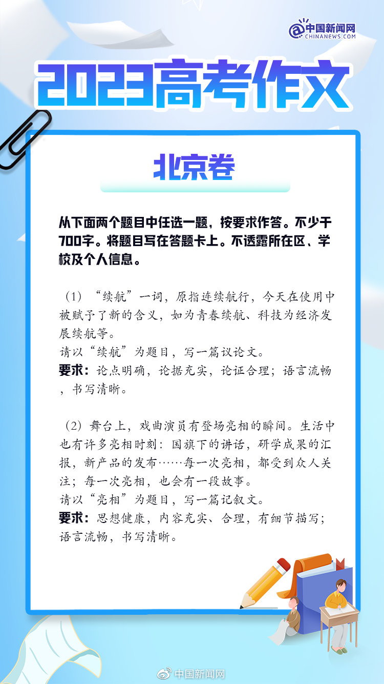 中新網(wǎng)6月7日電 2023年全國(guó)高考今日開(kāi)考,語(yǔ)文是首門考試科目。其中,受人關(guān)注的作文題目已陸續(xù)公布,快來(lái)圍觀!各地高考語(yǔ)文作文題目匯總↓↓↓
