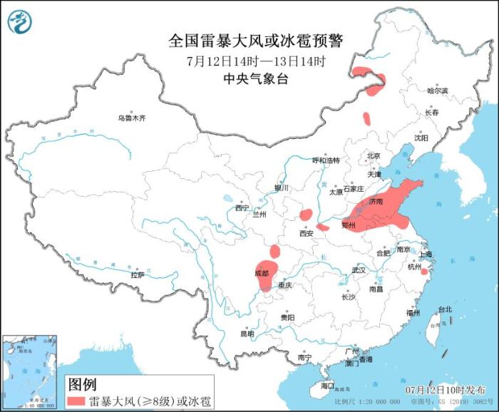 中新網(wǎng)7月12日電 據(jù)中央氣象臺網(wǎng)站消息,中央氣象臺7月12日10時繼續(xù)發(fā)布強對流天氣藍色預(yù)警:預(yù)計7月12日14時至13日14時,內(nèi)蒙古中東部、陜西中部、山東大部、河南東部、安徽北部、江蘇北部、四川盆地中西部等地的部分地區(qū)將有8-10級雷暴大風(fēng)或冰雹天氣;內(nèi)蒙古中東部、青海東部、甘肅東部和南部、陜西中南部、山西中北部、河北南部、山東、河南中北部、安徽北部、江蘇北部、四川盆地西部、云南西南部等地的部分地區(qū)將有短時強降水天氣,小時雨量30-50毫米,局地可達60毫米以上。