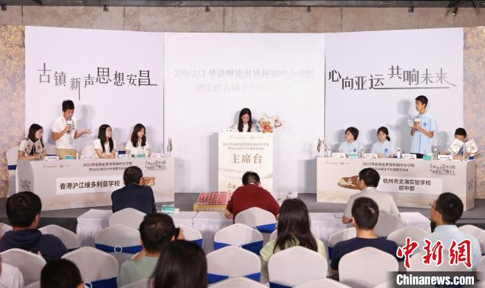 中新網(wǎng)紹興7月24日電(項菁)辯以明思,論以博學(xué)。7月22日至26日,2023華語辯論世界杯初中小學(xué)組暨安昌古鎮(zhèn)青少年思想節(jié)活動在浙江省紹興市柯橋區(qū)安昌古鎮(zhèn)舉行,辯論板塊分為團(tuán)體賽與個人賽,來自世界各地64支隊伍、64名個人選手圍繞“亞運(yùn)”“文化”等話題展開辯論,角逐“最強(qiáng)辯手”。