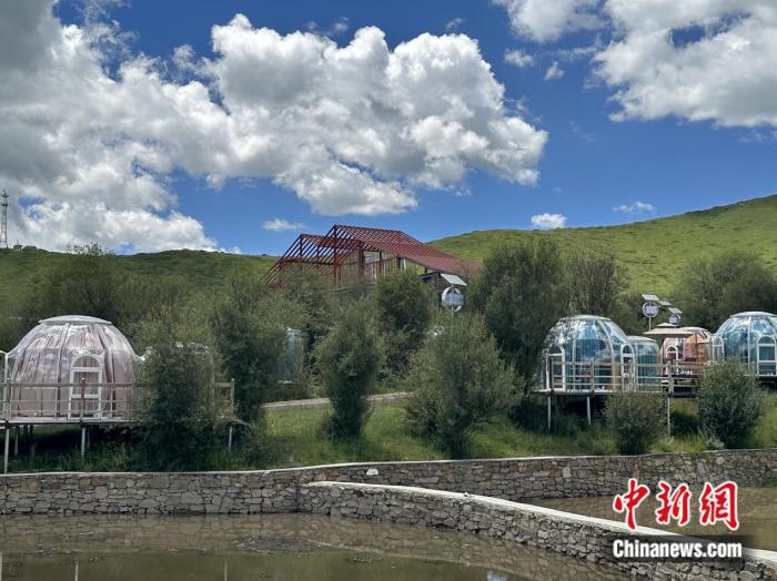 在園區(qū)內(nèi),除了大面積的草場(chǎng),還能看見(jiàn)一些臨水而建、顏色各異的圓形房間。王春貴介紹稱,那是供游客休閑的星空房。目前,紅原牦?,F(xiàn)代農(nóng)業(yè)園區(qū)正朝著牧旅融合的道路發(fā)展,咖啡屋、星空房等休閑設(shè)施以及牧旅融合體驗(yàn)區(qū)已初步建設(shè)完成?!叭拷ǔ梢院螅慰瓦€能在園區(qū)內(nèi)體驗(yàn)牦牛喂養(yǎng)?!蓖醮嘿F說(shuō)。