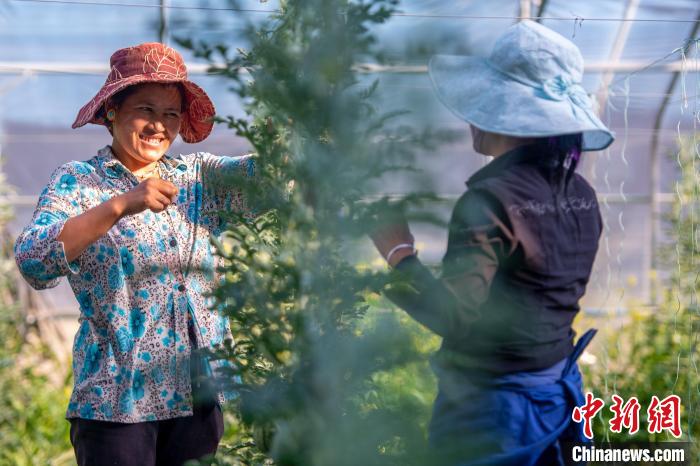 資料圖為西藏白朗縣農牧民在大棚內打理西瓜苗。江飛波 攝