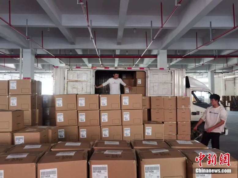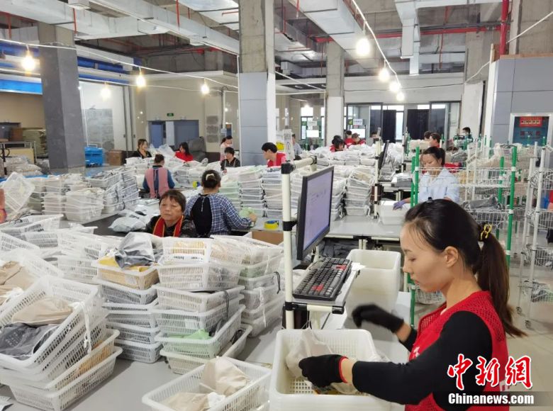 工作人員正在打包襪子。圖源:諸暨市大唐街道