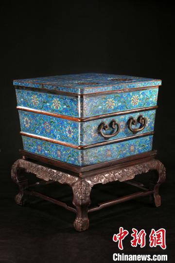 沈陽(yáng)故宮院藏的清乾隆款掐絲琺瑯寶相花大冰箱,內(nèi)部為錫板里,內(nèi)加隔層木板,放入天然冰可使食品保鮮?!?沈陽(yáng)故宮博物院供圖)