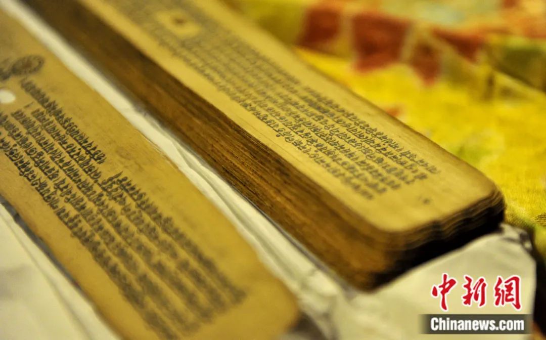 布達(dá)拉宮內(nèi)保存的梵文貝葉經(jīng)。李林 攝