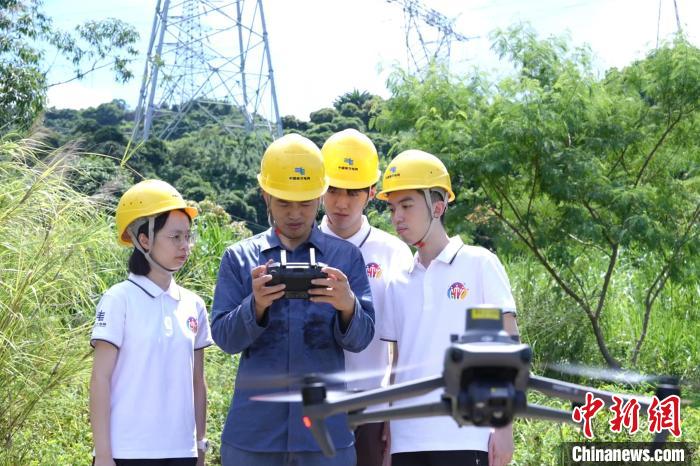 在南方電網(wǎng)公司深圳供電局實習的港澳臺大學(xué)生學(xué)習開展無人機巡視作業(yè)。(南方電網(wǎng)供圖)