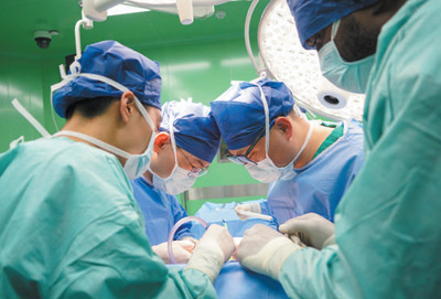 8月10日,醫(yī)生在中國海軍“和平方舟”號醫(yī)院船上,為瓦努阿圖患者進行手術(shù)。